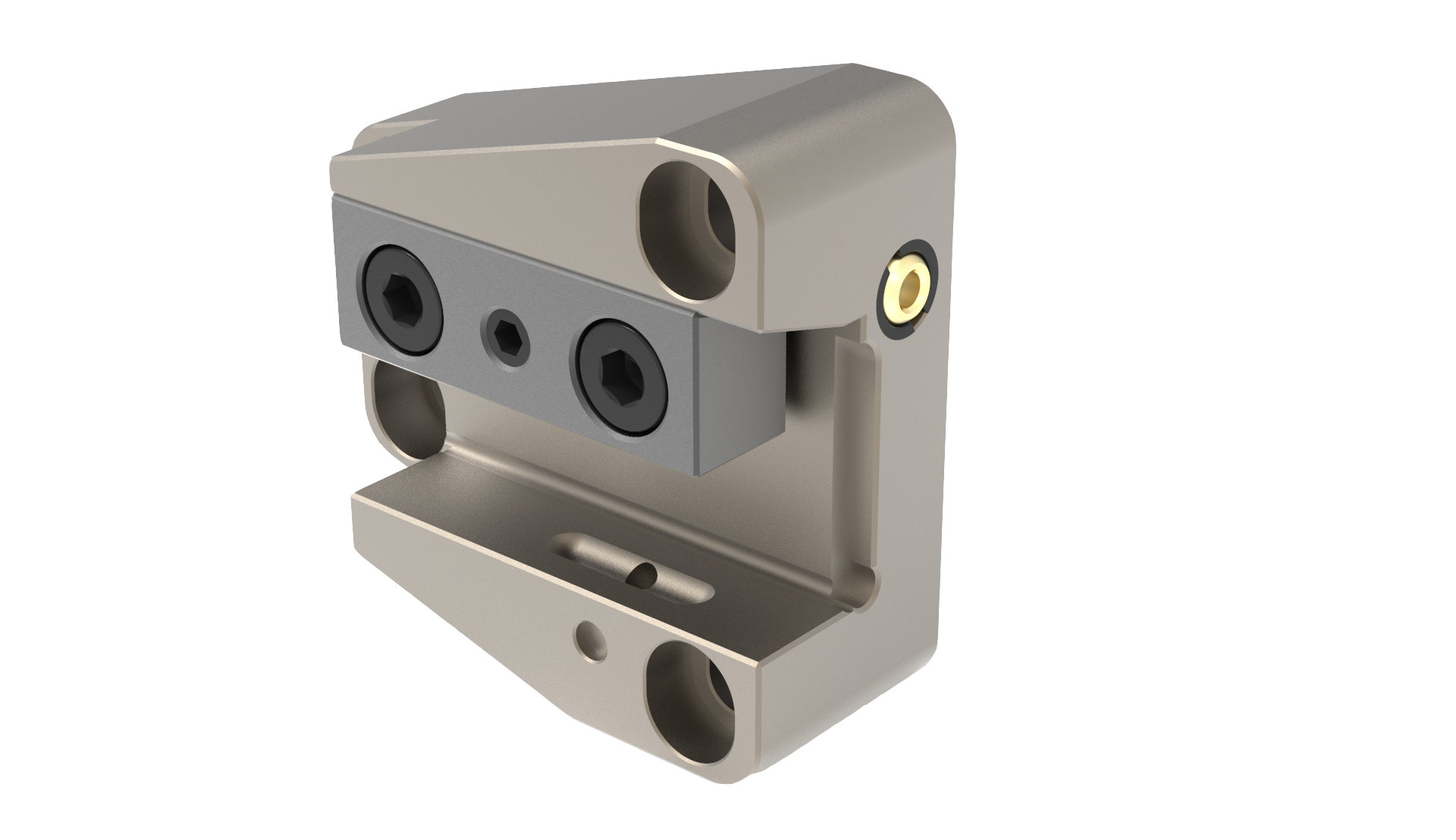 It has a massive wedge clamping for the grooving tools and the usual coolant spray nozzle to supply the coolant externally. The highlight of the holder is the internal coolant supply! Modern grooving tools now have an internal coolant supply and have outlet holes above and below the cutting insert. The necessary connection to the holder is no problem with the Revolution holder for grooving tools of the Cool Tool Tool Clamping System! Clamp the grooving tool, set the coolant to internal, set the center position and off you go