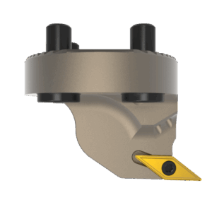 Die Modularen Cool Tool Bohrstangenköpfe mit DM-40 Schnittstelle sind in ihrer Ausführung einzigartig. Wie auch schon unsere Seitendrehmeißel verfügen die Köpfe mit negativer Schneidplatte über die Innenkühlung durch die Spannpratze. Des Weiteren haben die Köpfe in der Front noch eine Düse die von unten entlang der Schneide sprüht um so die Späne weg zu blasen und die Schneide optimal zu kühlen.