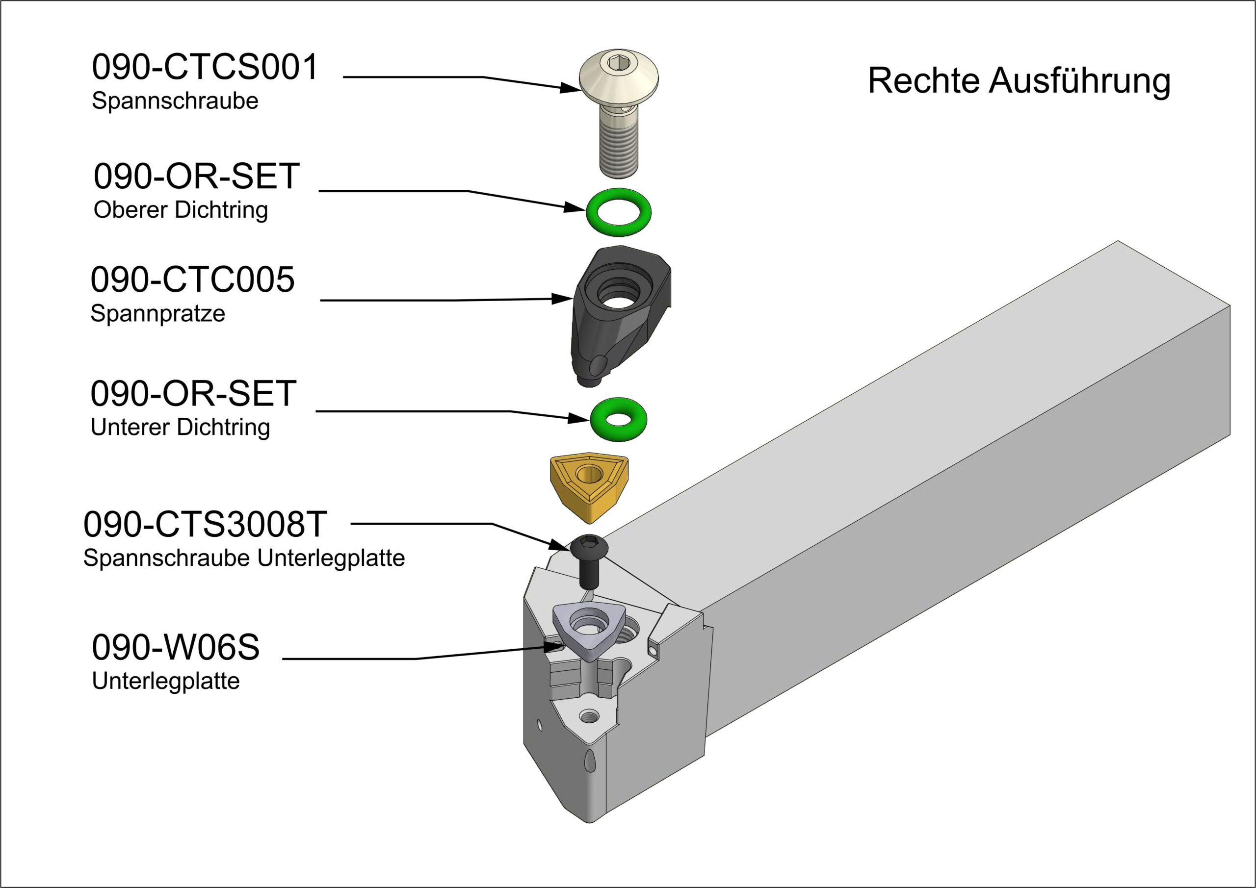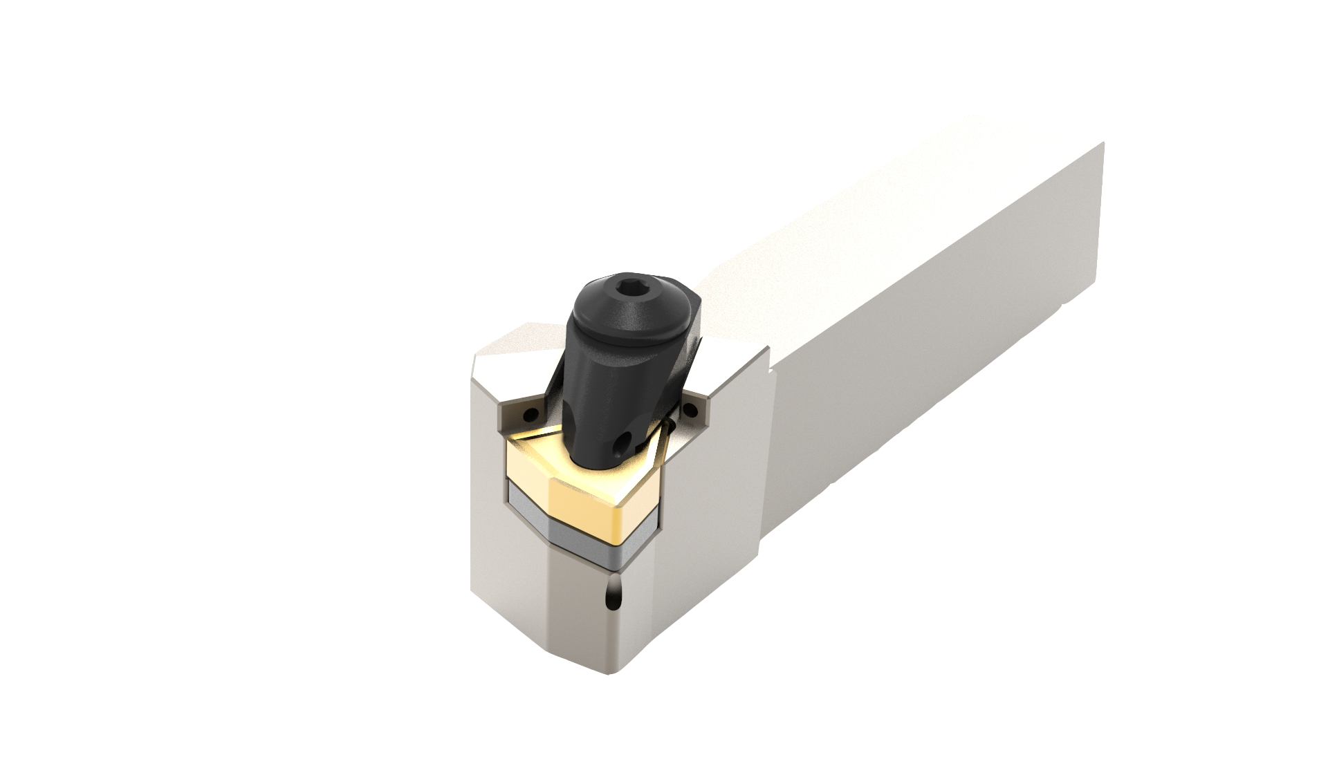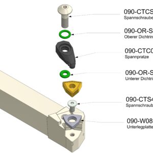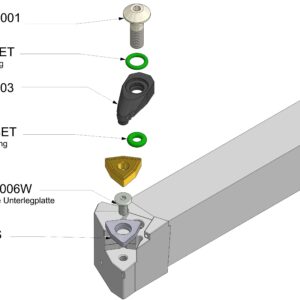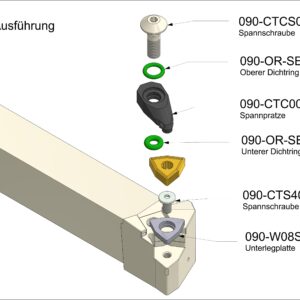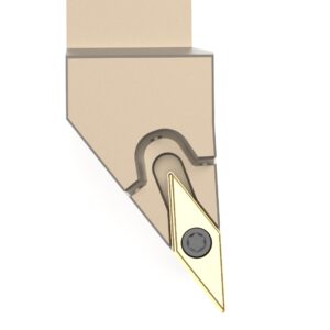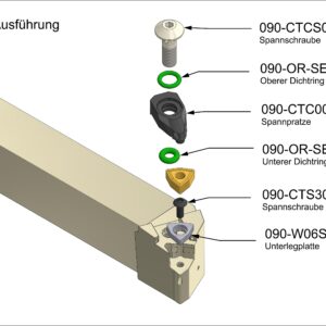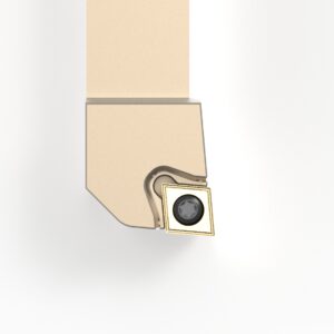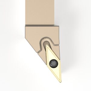 Unsere Seitendrehmeißel verfügen über mindestens zwei Möglichkeiten zum Anschließen des Kühlmittels: Ein Anschluss mit einem G1/8″ Anschlußgewinde hinten am Halter und ein Loch in der Mitte des Schafts zur direkten Übergabe des Kühlmittels. Unsere Halter mit negativer Wendeschneidplatte verfügen idR. noch einen dritten Kühlmittelanschluss vorne am Kopf mit einem G1/8″ Anschlußgewinde. Ob an konventionellen Drehmaschinen oder an modernen Bearbeitungszentren: unser Seitendrehmeißel kann überall angeschlossen werden und somit können die Vorteile der Innenkühlung überall genutzt werden. Ein besseres Sichtfeld und höhere Standzeiten zeichnen diesen Seitendrehmeißel aus.