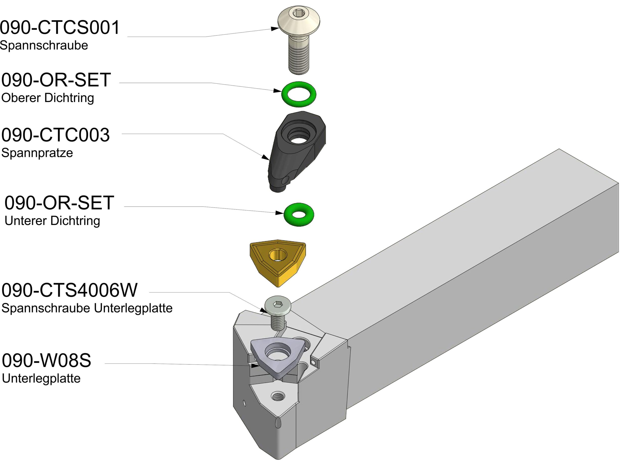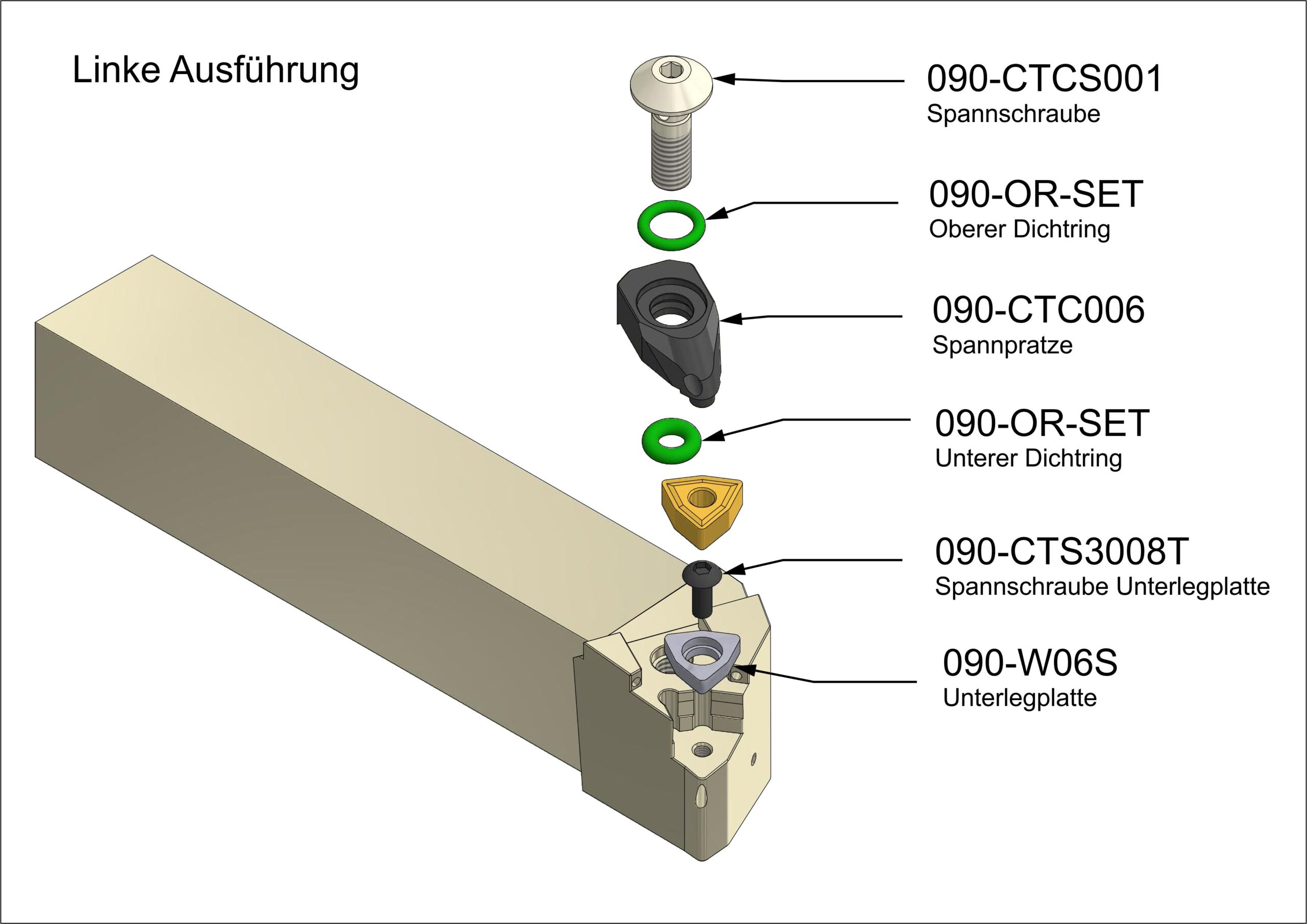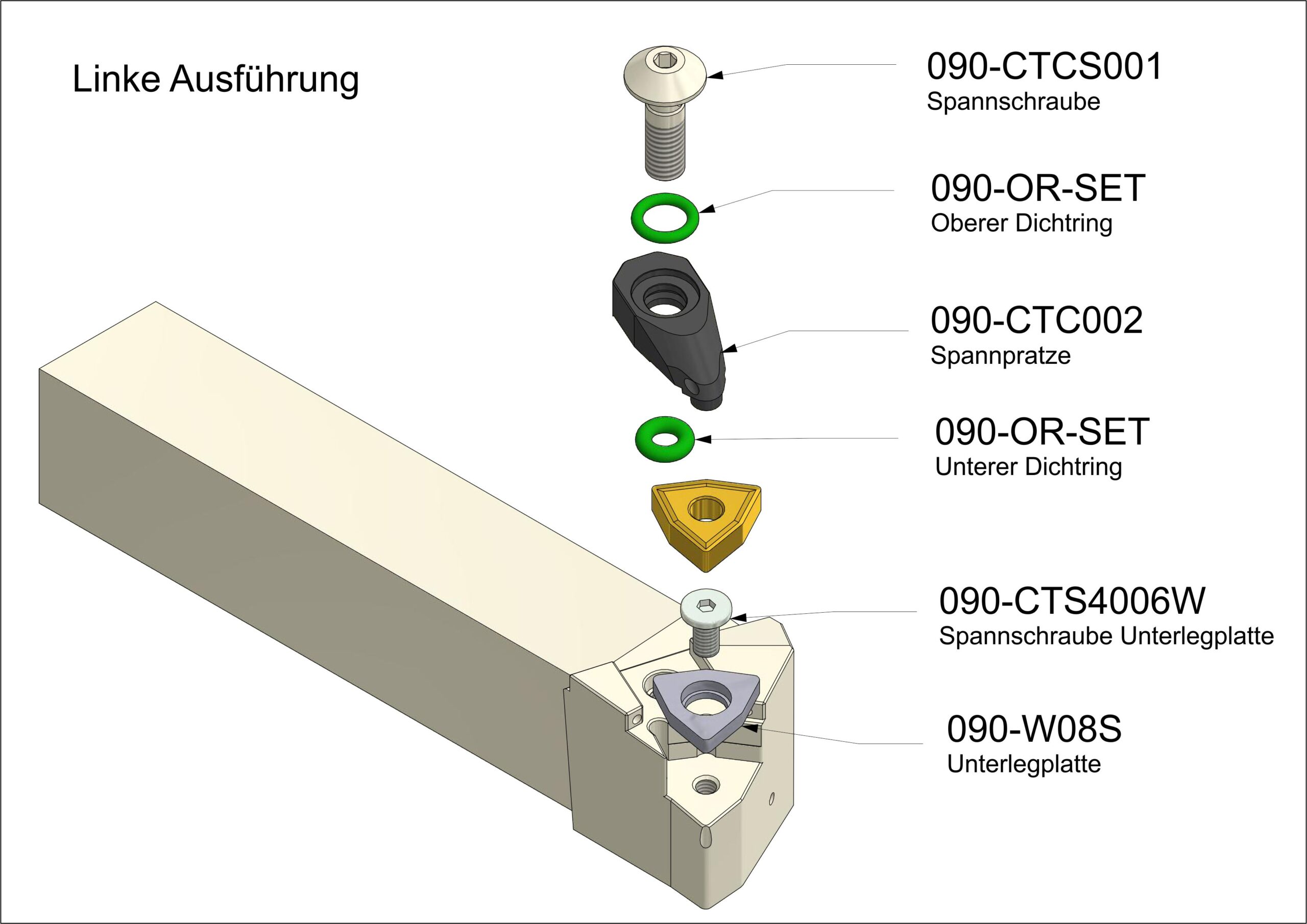 Unsere Seitendrehmeißel verfügen über mindestens zwei Möglichkeiten zum Anschließen des Kühlmittels: Ein Anschluss mit einem G1/8″ Anschlußgewinde hinten am Halter und ein Loch in der Mitte des Schafts zur direkten Übergabe des Kühlmittels. Unsere Halter mit negativer Wendeschneidplatte verfügen idR. noch einen dritten Kühlmittelanschluss vorne am Kopf mit einem G1/8″ Anschlußgewinde. Ob an konventionellen Drehmaschinen oder an modernen Bearbeitungszentren: unser Seitendrehmeißel kann überall angeschlossen werden und somit können die Vorteile der Innenkühlung überall genutzt werden. Ein besseres Sichtfeld und höhere Standzeiten zeichnen diesen Seitendrehmeißel aus.